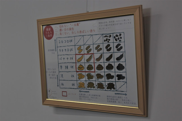 前往廁所的走道上,發現一幅很有趣的圖,藉由檢視自己便便,來判斷身體健康的圖示,我只能依圖示猜大概意思,看得懂日文的朋友,請多多利用蛤。