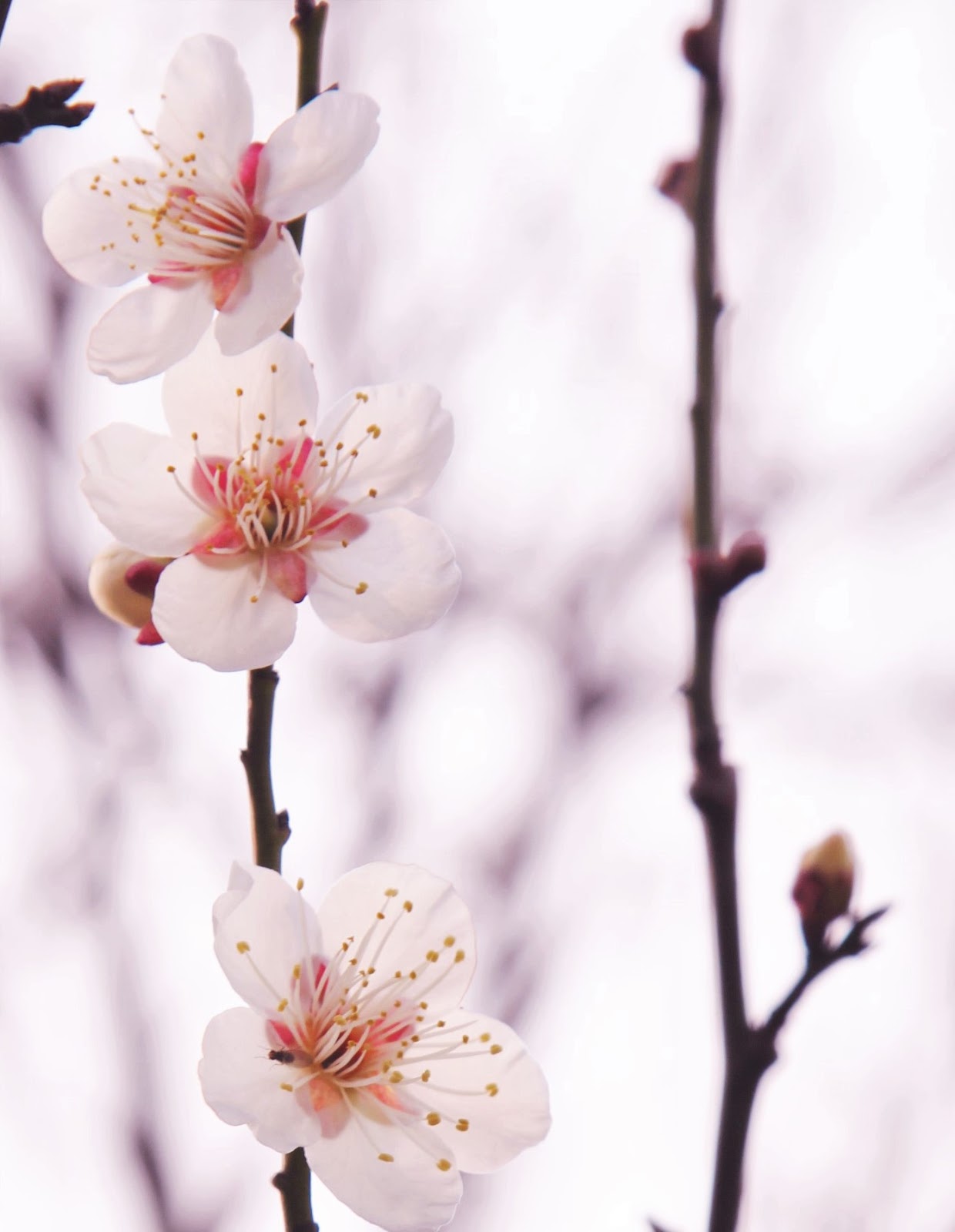 花的數量不多,但還有白色的梅花,同樣是盛開著